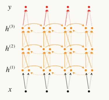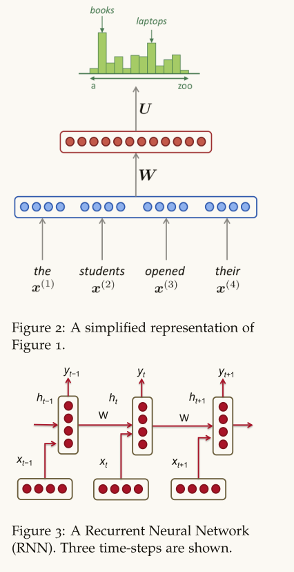 \begin{aligned}h_{t}&=\sigma(W^{(hh)}h_{t-1}+W^{(hx)}x_{[t]})\\hat{y}{t}&=softmax(W^{(S)}h{t})\end{aligned}